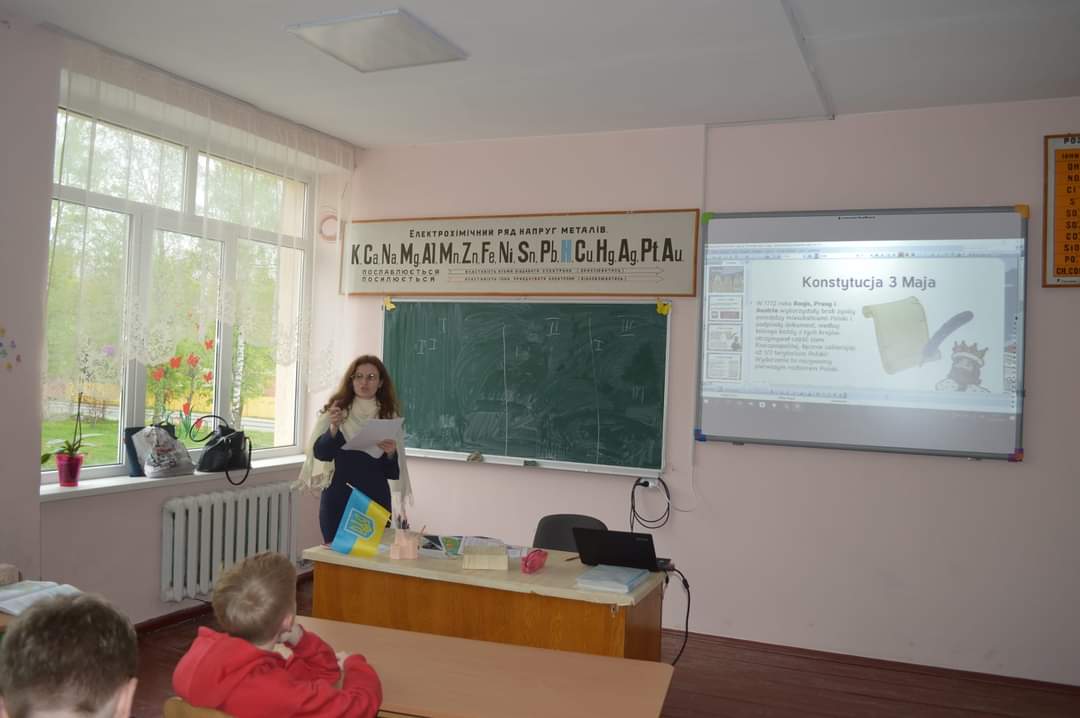 Учні 6-А класу спільно з вчителем польської мови п.Ольгою Кравчук відзначили День Конституції Республіки Польща вікториною-конкурсом «Що ти знаєш про Польщу та її традиції?». Учні переглянули тематичний фільм, активно відповідали на запитання вікторини, заглибилися в «перлини народної мудрості» та фразеологізми. Час промайнув весело та пізнавально.