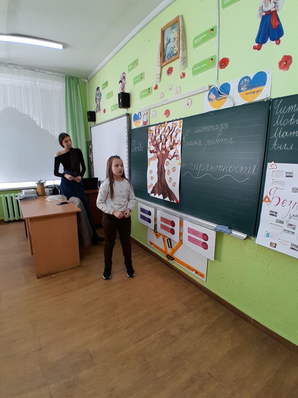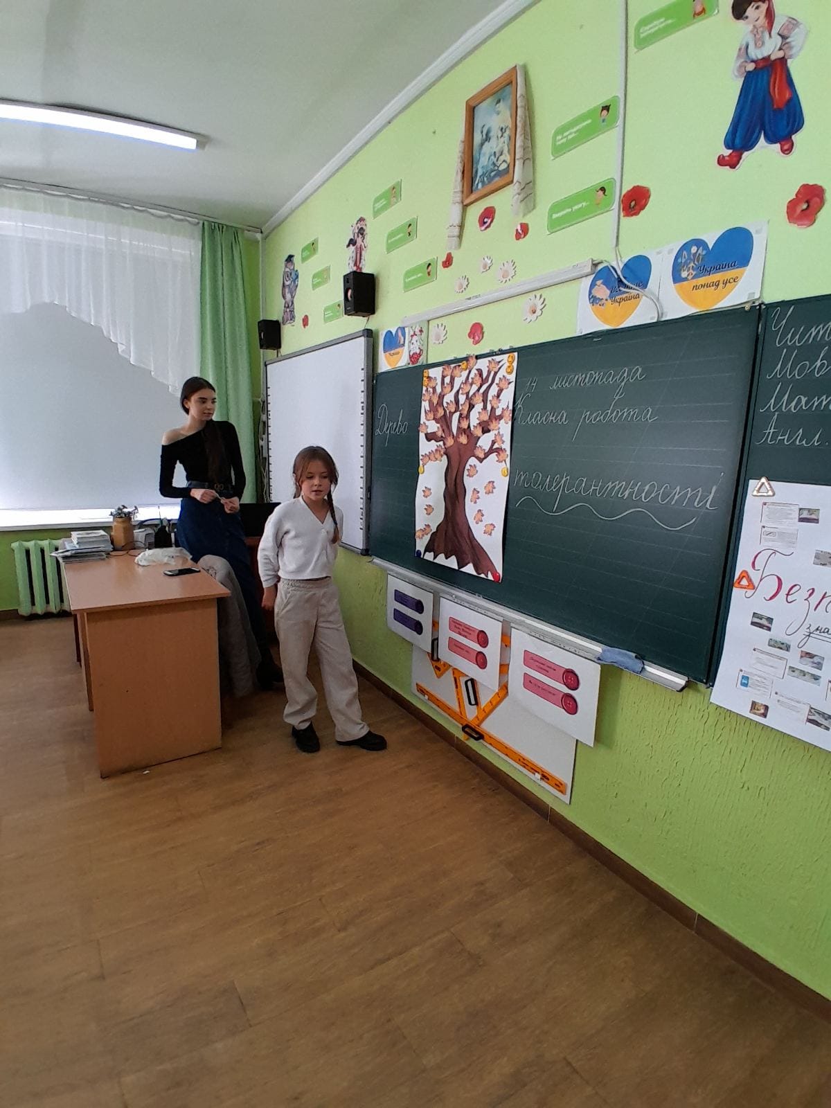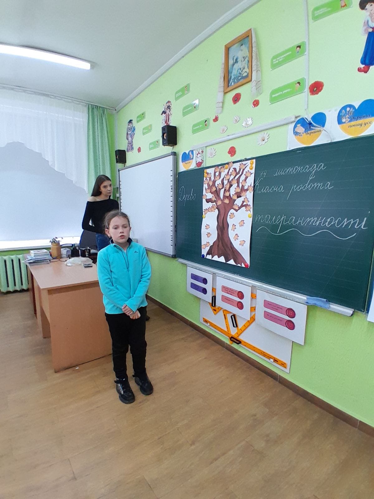 Учні 4-А класу зі шкільним психологом п.Юлеєю Ганчарик створювали “дерево толерантності”.Робота над “асоціативним кущем” проходила цікаво, оскільки учні не лише підбирали слова, а й виявили бажання прокоментувати свій вибір.
