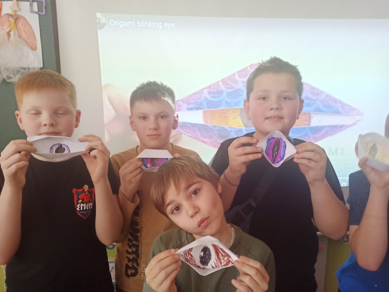 Майже місяць учні 4-Б класу (вчитель Оксана Заліська) вивчали системи і органи тіла людини. Вчились практично надавати першу медичну допомогу, слухали сердечко, вимірювали пульс. Конструювали легеневу і опорно-рухову системи людини. А також робили орігамі “Око”. Ось, що у нас вийшло!