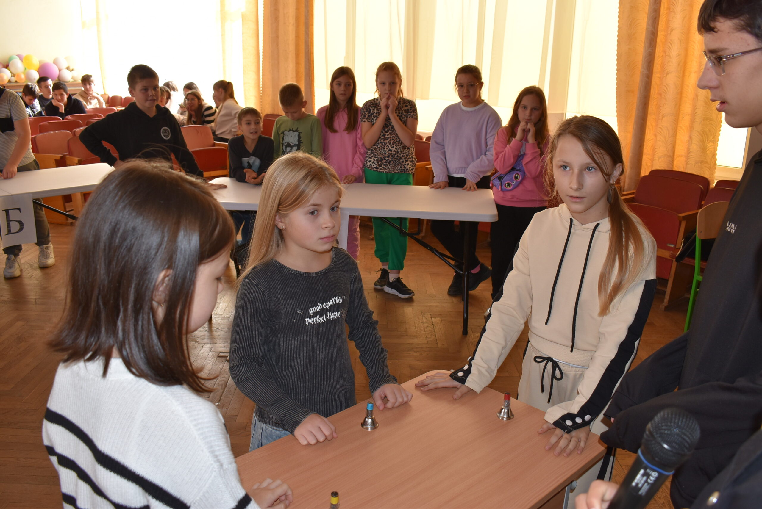 Олег Кімак, Уляна Стеців, Владислава Микиташ, Ірина Нестер, Олена Шологін та Віктор Мінчак провели цікаву гру для учнів 5, 6, 7-х класів за зразком сучасної телевізійної гри “Є питання”: суть гри полягала в тому, щоб учасники команд відгадали відповіді на питання, які увійшли у топ 8-10 відповідей. Лідери заздалегідь опитали 100 учнів 8-11 класів, упорядкували їх відповіді за чисельністю і сформували перелік найбільш популярних.