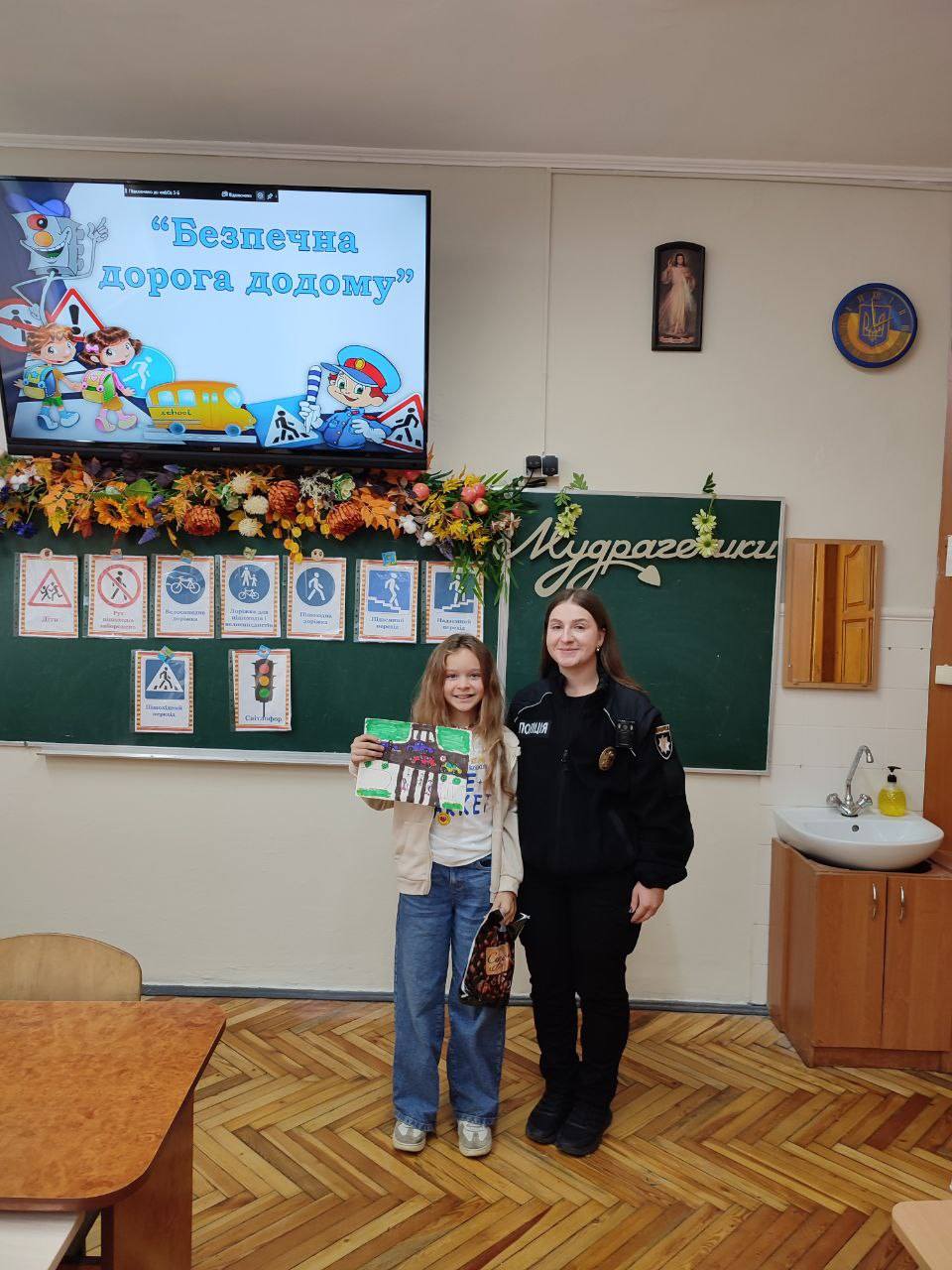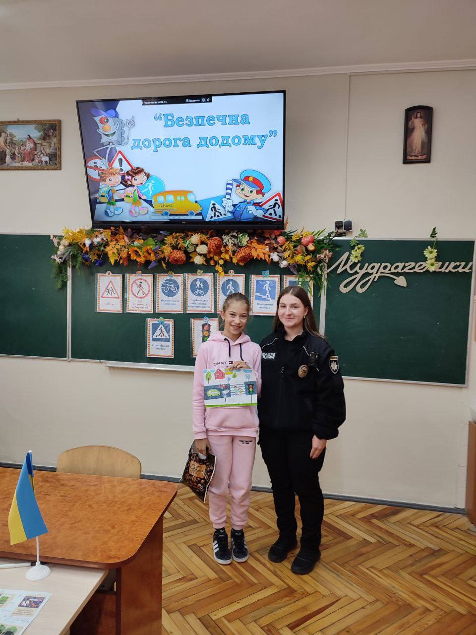 ”Моя дорога додому” – урок правил дорожнього руху у 5-Б класі ”Інтелект України”провели класний керівник Оксана Думайло та Юлія Вороняк інспектор сектору Служба Освітньої Безпеки Дрогобицького РВП ГУНП у Львівській області. Діти пригадали як правильно переходити дорогу, знаки дорожнього руху, а також малювали малюнки, за які отримали призи.