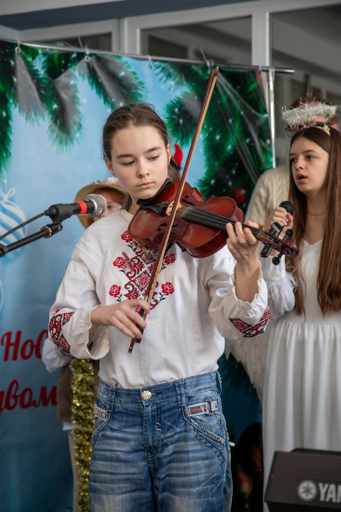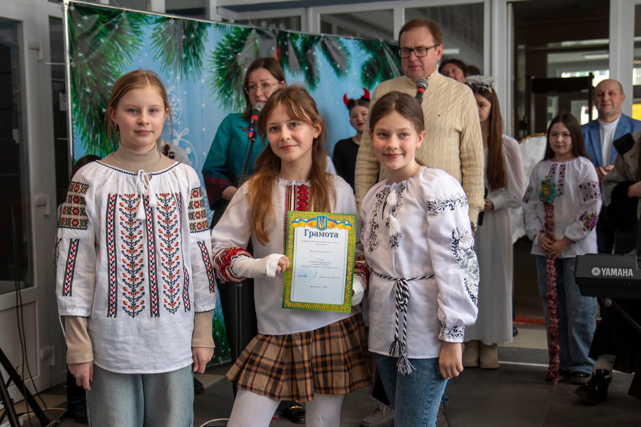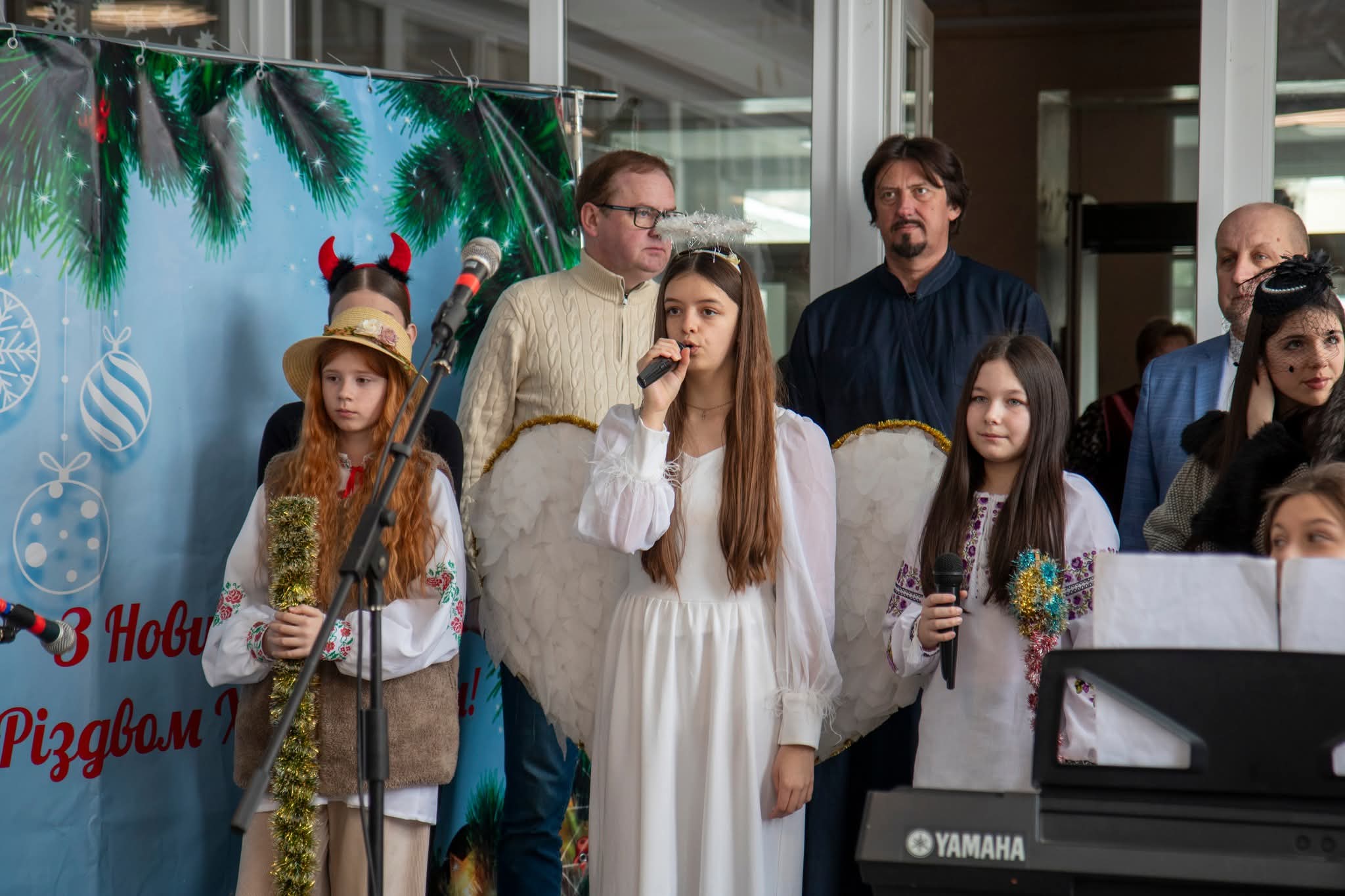 Учні 4-7 класів об’єдналися у гучному співі, щоб прославити народження Христа. Розпочали свято зі спільної молитви: разом із настоятелем храму Покрови Пресвятої Богородиці отцем Володимиром Бондарчуком діти та дорослі помолилися за наших Захисників, завдяки яким маємо змогу збиратися разом.