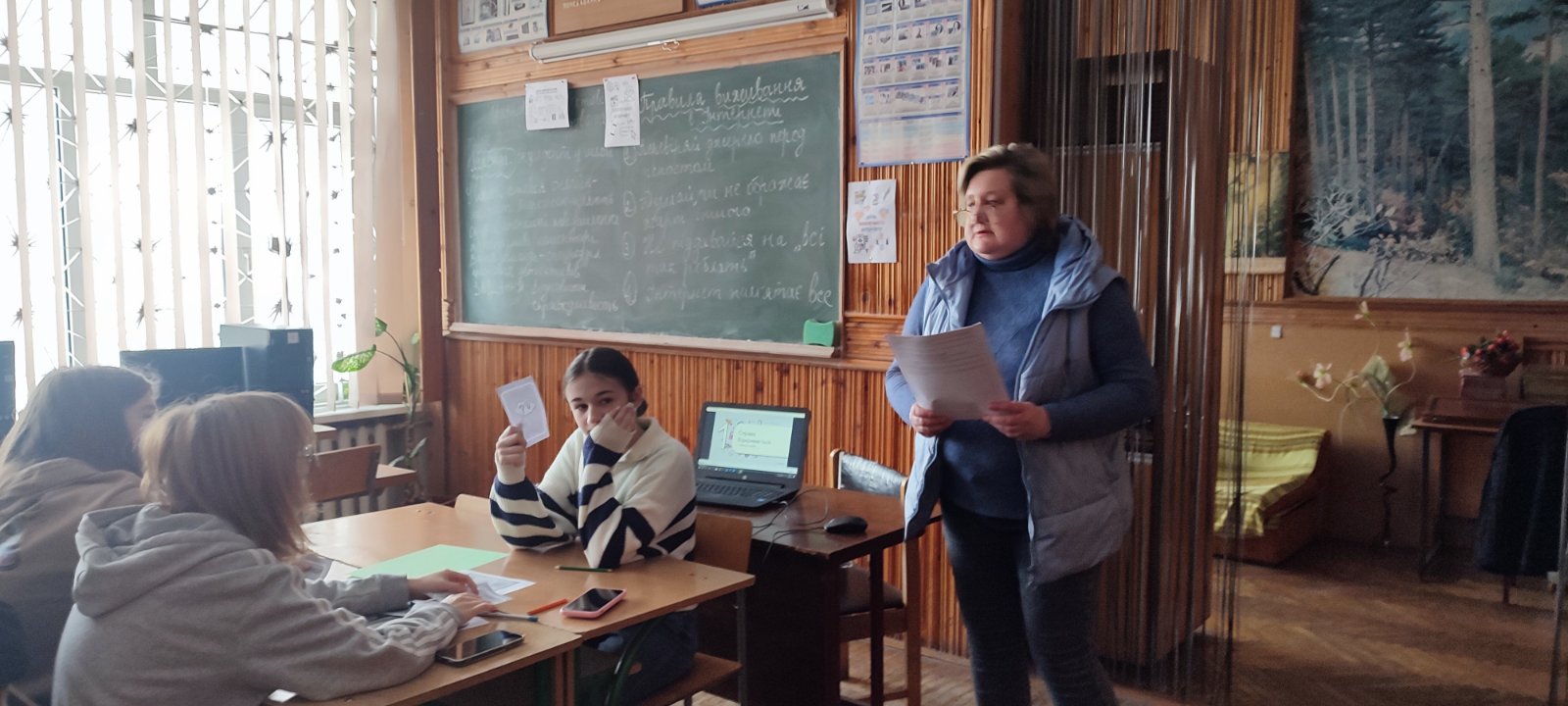 Коли немає світла й комп’ютерів, але є бажання вчити й вчитися, народжуються найкращі ідеї. Саме так вчителем інформатики СЗШ № 1 Галиною Мілян було проведено інтерактивний воркшоп «Цифровий детектив: розслідує онлайн-інцидент» для учнів 8 класу. Автор сценарію уроку Людмила Булигіна – вчителька інформатики Політехнічного ліцею КПІ, інженерка Фізико-технічного інституту КПІ ім. Сікорського, керівниця секції “Кібербезпека” Київської Малої академії наук.