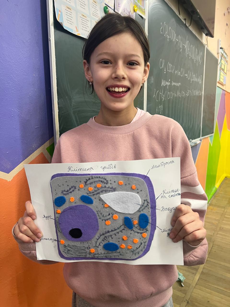 Під час вивчення теми про клітину юні природодослідники не лише ознайомилися з її будовою, а й проявили творчість, виготовивши моделі клітин. Така робота допомагає краще зрозуміти, з яких частин складається клітина, як вони розміщені та яку роль виконують.